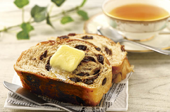 リニューアルのポイントは、とにかくレーズンがたっぷりなこと。パンでふんだんに巻き込んでいて、ひと口ごとにレーズンのみずみずしい甘みと香りが広がります。さらに表面のザラメが「じゃりっ」と心地よいアクセントを加え、食べ飽きない上品な甘さに。やわらかな生地とみずみずしいレーズンを楽しめるそのままの食べ方はもちろん、トーストすれば外はサクッと香ばしく、さらにバターをのせれば甘みと塩味が絶妙に調和します。朝のトーストに紅茶を添えて、季節を感じる朝ごはんをお楽しみください。