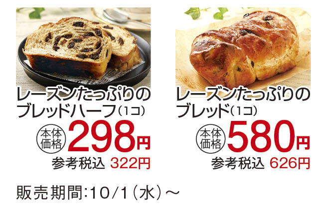 「レーズンたっぷりのブレッド」が10月にリニューアル!レーズンの量を増やし、どこを食べてもレーズンが味わえる贅沢な仕上がりになりました。ぶどうの旬であるこの季節にぴったりな、レーズンの自然な甘みと香りを存分に楽しめる、自信を持っておすすめできる一品です。