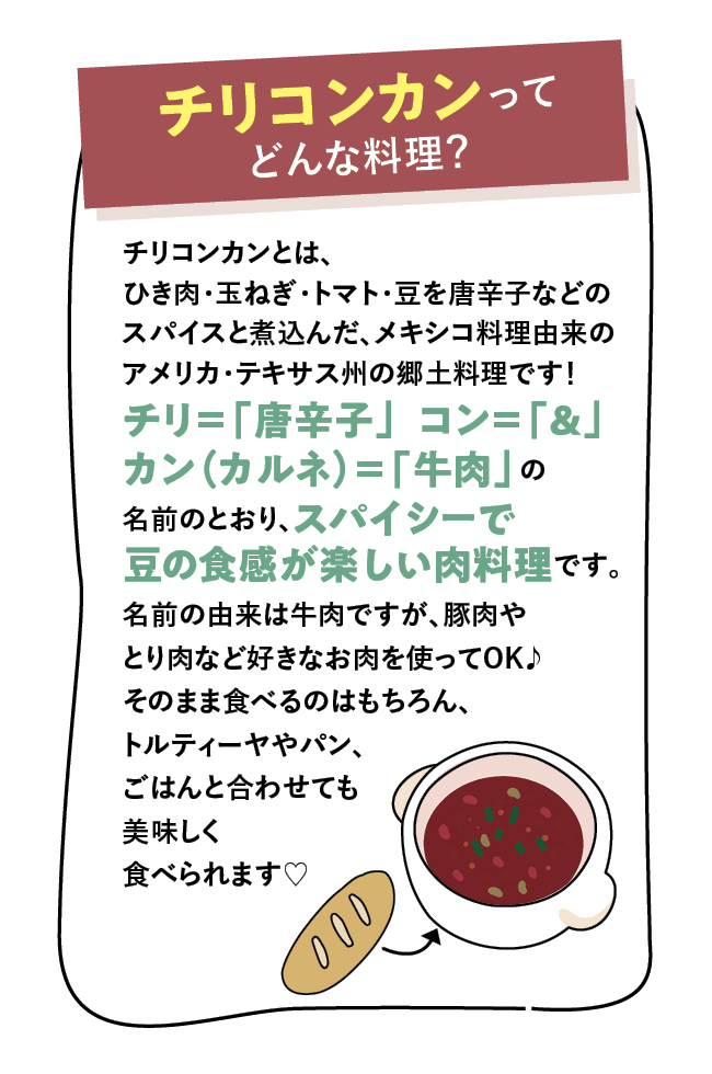 鍋にオリーブオイルを加え、にんにく・クミンシードを炒める。残りの野菜を加え塩を振り、しんなりするまで炒める。とり肉も加え火が入るまで炒め、更にA・豆も加え炒める。Bを加え、ふたをして10分ほど煮込む。(お好みでカイエンペッパーを加える)