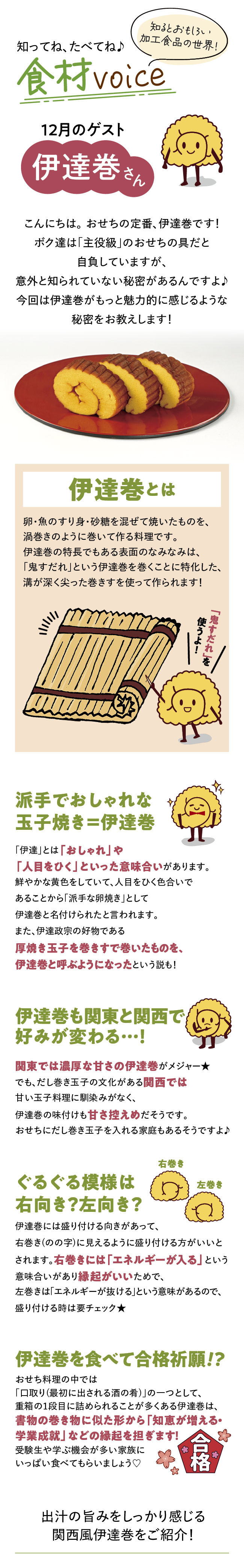 生地が熱いうちに、濡れ布巾で拭いた巻きすに横向きにのせて、手前から軽く巻く。輪ゴムで止めて、5分おく。再度巻きすをきつく巻く。常温になるまでおく。食べやすい大きさに切り器に盛る。