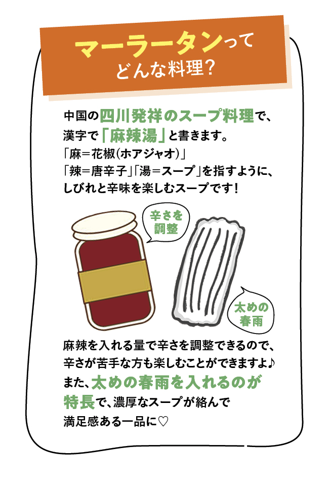 太めの春雨を使って食べ応え◎ 豆板醤で辛さを調整できます♪