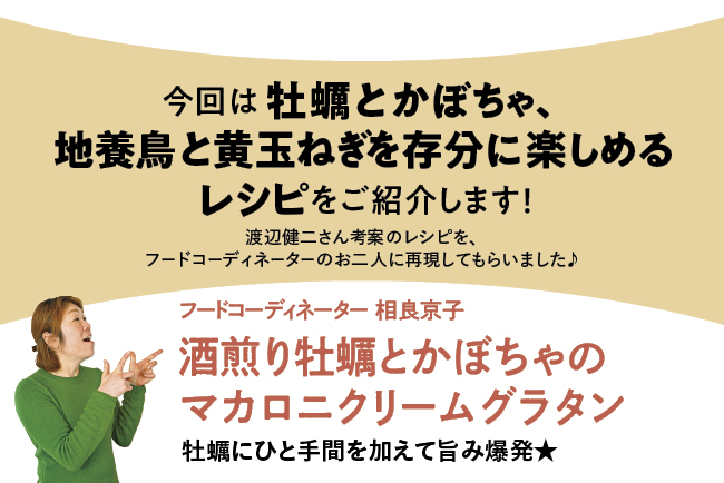 かぼちゃを一口大に切り、軽く水で洗う。耐熱ボウルに入れて、ふんわりとラップをし、600Wの電子レンジで4~6分加熱する。ほうれん草は下ゆでして、食べやすい大きさに切る。マカロニは既定の時間ゆでてザルにあげる。牡蠣が入るくらいの鍋にAを入れ、中火で牡蠣に火が通るまで火を入れて酒煎り牡蠣を作る。オーブンを220度に予熱する。