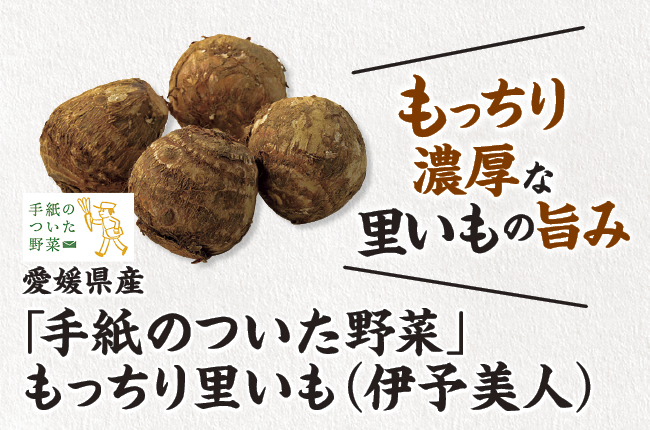 ※パッケージの二次元コードを読むと、もっちり里いも(伊予美人)の生産者さんからのお手紙が読めます。味の感想などぜひお返事も書いてください!
