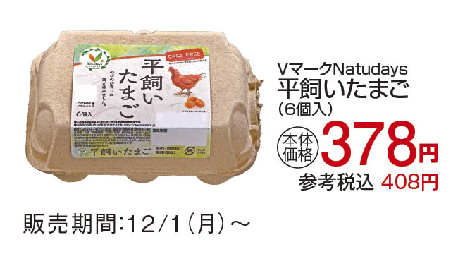 この12月、新たにラインナップに加わった「平飼いたまご」は、自然に寄り添うやさしい育て方から生まれました。鶏たちはケージに閉じ込められることなく、鶏本来の行動欲求を満たしながら、鶏舎の中を自由に動き回っています。そんな環境で育つことで、ストレスが少なく、健康で安定した卵を産んでくれるのです。これが「アニマルウェルフェア」に配慮した平飼いの大きな特長。飼料には遺伝子組み換え原料が混ざらないよう分別流通管理されたとうもろこしや大豆かすを使用し、安心とおいしさの両立を目指しています。さらに、この卵を包むパックにもひと工夫。プラスチックではなく、古紙をリサイクルして作られたモールドパックを採用しました。生産から包装まで徹底した衛生管理のもとでつくられた「平飼いたまご」は、サステナブルな食のあり方を身近に感じさせてくれます。