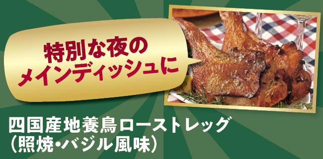 テーブルの真ん中に、このローストレッグを置くだけでいつもの食卓が一気にクリスマス仕様に変わります。大ぶりな骨付き肉を手に持ってかぶりつけば、家族みんなが思わず笑顔に。子どもたちには照焼を、大人の集まりや女子会には、シャンパンや白ワインと相性の良いバジル風味を選べば、それぞれの時間にぴったりの一皿になります。ご自宅のレンジで軽く温めるだけで準備は完了。香ばしさと肉汁が広がり、1本でしっかり満足できるボリューム感です。クリスマスケーキやオードブルと並べれば、ローストレッグが堂々と“主役”として存在感を放ち、1年のご褒美にふさわしい食卓を演出してくれます。家族と、恋人と、友人と。大切な人と囲むクリスマスの夜に、特別な一本を味わってみませんか。