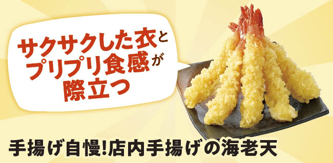 今年の大晦日、特別な年越しそばのお供にふさわしいのが、「手揚げ自慢!店内手揚げの海老天」です。大ぶりで身がしっかり締まったプリプリのブラックタイガーを一尾ずつ丁寧に処理し、衣をつけて揚げるだけでなく、途中でさらに衣を上から垂らして「花を咲かせる」技術を施すことで、衣がふわっと膨らみ、美しい形状と軽やかなサクサク感を実現。これは手揚げならではの手間と時間をかけた技であり、機械では再現できないポイントです。香ばしい衣に包まれたぷりぷりの海老は、一口食べれば満足感と贅沢さを感じられる逸品に仕上がっています。