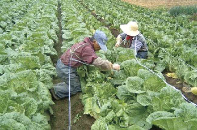 寒い冬になると、野菜は寒さから自分を守るために細胞に糖をため込みます。凍らないように寒さに耐えるための習性が、冬野菜の甘さを生み出す秘密です。生産者は霜が降りる前に外葉で包み込むようにひとつずつ白菜の頭部をひもで結びます。こうして白菜の中身をやさしく守り、繰り返し霜に当てながら冬を乗り越えさせます。昼と夜の大きな温度差によって、日中にしっかりと光を浴びた葉が、夜の寒さでさらに甘さを蓄えます。霜が降りるたびに葉が締まり、丸くずっしりと詰まった白菜に育っていきます。自然の恵みと人の手間が一体となって生まれる、冬だけの味わい。手に取れば、その美しい白さの中に、しっかりとした甘さを感じていただけることでしょう。