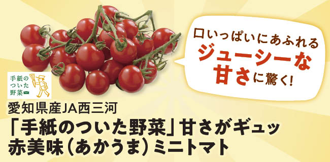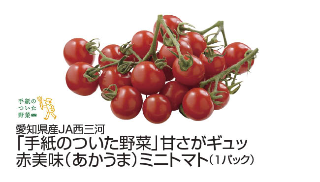 ※パッケージの二次元コードを読むと、甘さがギュッ赤美味(あかうま)ミニトマトの生産者さんからのお手紙が読めます。味の感想などぜひお返事も書いてくださいね!