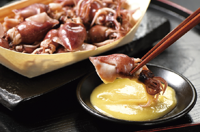 水揚げしてすぐに茹で上げるから、新鮮さはそのまま。ひとくち頬張れば、噛むたびにぷりっと弾む歯ごたえと、ほたるいか特有のコクのある旨みがじんわり広がり、海の香りがふわりと鼻に抜けます。添えるのは、まろやかな酢味噌。甘みと酸味のバランスが絶妙で、ほたるいかの肝の濃厚な味わいをいっそう引き立ててくれます。シンプルながらも春の訪れを感じられる、富山が誇る旬の逸品です。