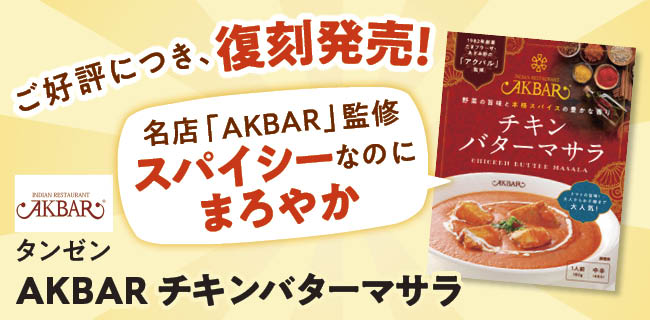 横浜・たまプラーザで40年以上愛され続けるこだわりのインド料理店「AKBAR」さんと当社國分バイヤーがタッグを組んで作り上げた、大好評のカレーがこのたび復刻発売!お店の味に近づけるために何度も試行錯誤を重ね、「AKBAR」さんにも太鼓判をいただいた一品です。辛すぎず、幅広い世代の方におすすめのカレーです。