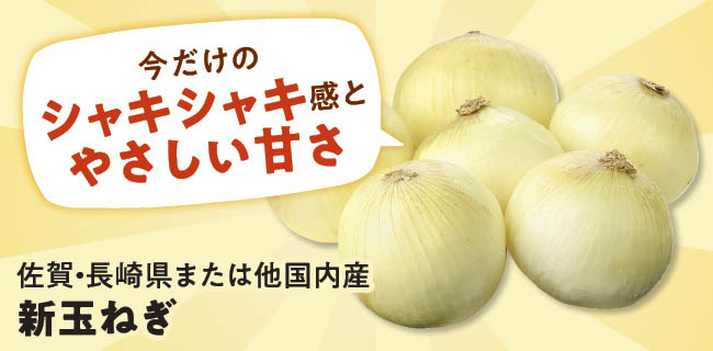 春の訪れとともに店頭に並ぶ新玉ねぎは、この時期ならではのみずみずしさが魅力の旬野菜です。畑で太陽の光をたっぷり浴び、適度な暖かさと湿度の中で育った新玉ねぎは、水分を豊富に含み、ずっしりとした重みが特長。一般的な玉ねぎに比べて辛みが少なく、やさしい甘みが際立ちます。シャキッとした食感の中に広がるみずみずしさと、ほんのり感じる甘みは春ならではの味わい。産地をリレーしながら、その時期いちばんおいしいものをお届けしています。旬ならではのフレッシュなおいしさを、ぜひお楽しみください。